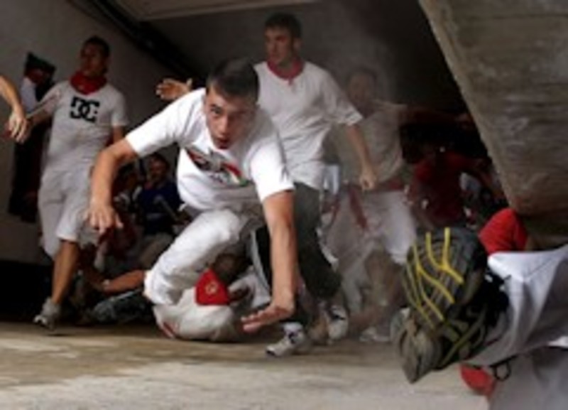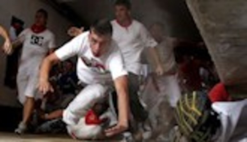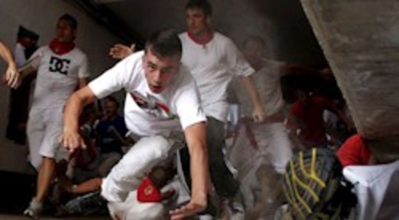 Un corredor ha resultado corneado en esta carrera, en la que los astados de la ganadería gaditana de Fuente Ymbro han roto la fama de rápidos que les precedía y en su sexta participación en las fiestas de Pamplona han protagonizado el encierro más lento de estos sanfermines, debido a la resistencia de uno de ellos a seguir su camino.