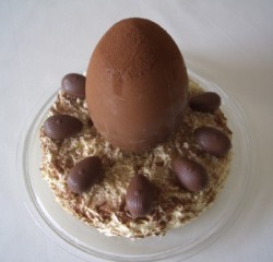 En Cataluña, sin embargo, la mona presenta una evolución que la hace totalmente diferente. Su apariencia es más cercana a la de una tarta. Empezó sustituyéndose el huevo de gallina por uno de chocolate que acabó siendo la base de la mona haciendo los pasteleros auténticas filigranas arquitectónicas con el chocolate.