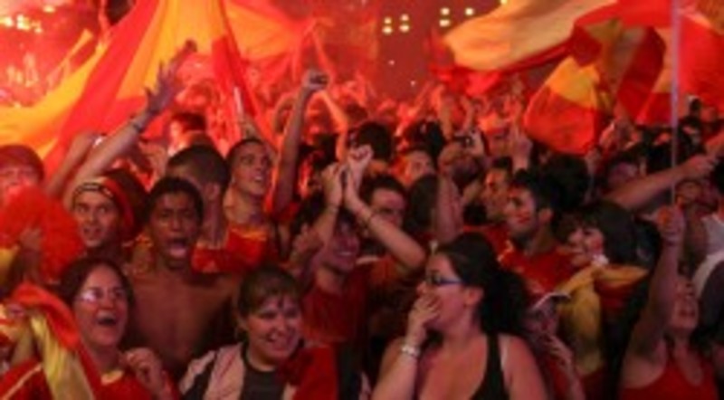 En Madrid, más de 250.000 personas llenaron la principal avenida de la capital, el Paseo de la Castellana, entre las plazas de Colón y Cibeles, para no perderse detalles de la final en varias pantallas gigantes. Alrededor de 2.000 policías se ocuparon de la seguridad. Las compañías de Metro autobuses reforzaron sus líneas de acceso al mencionado paseo. La marea de seguidores convirtió las arterias de la capital en un inmenso campo rojo.