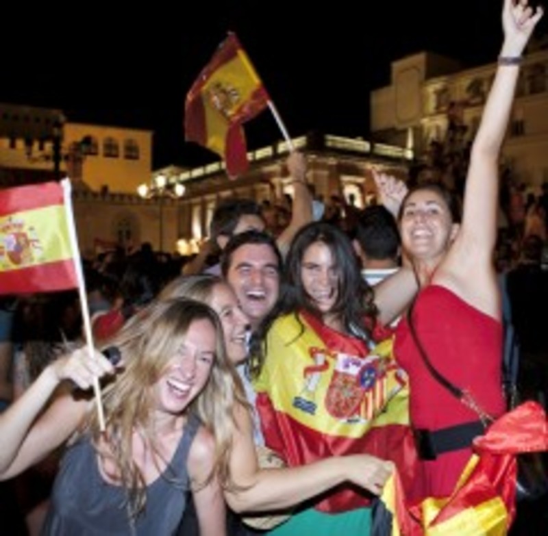 España se echó este domingo a la calle para celebrar la conquista de la Copa del Mundo por la selección de fútbol, en una jornada en la que el color rojo de la camiseta del combinado nacional se esparció por todos los rincones del país. Caravanas de automóviles recorren las calles de las ciudades, con sus conductores sin dejar de tocar el claxon, mientras ondean las banderas por las ventanillas, en un estado de euforia y alegría que acompaña también el ruido de los cohetes pirotécnicos.