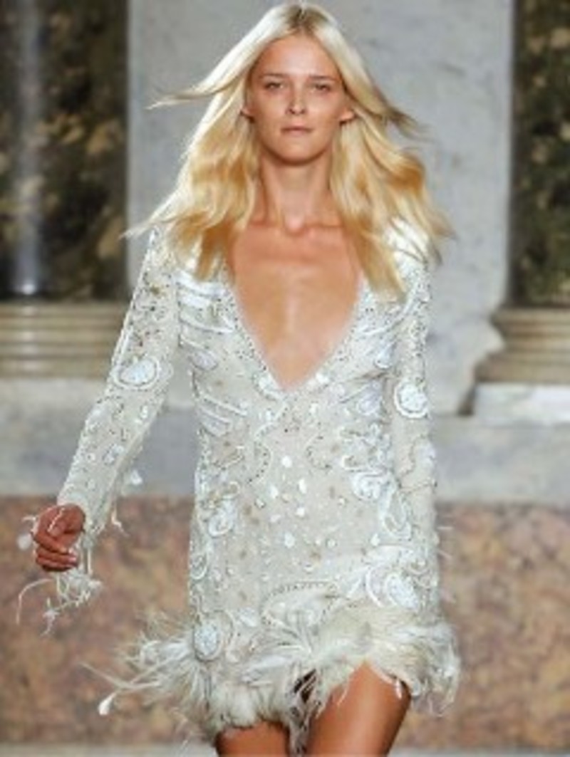 añadidos a las prendas. Piedras, cuentas de cristal, abalorios diversos, plumas. Lo necesario para dotarlos de la sofisticación, el barroquismo y la elegancia y la opulencia de que hacen gala. Todo esto entrelazado entre finas y ligeras telas como muselinas o gasas que son la base perfecta para este cuidado y esmerado detalle de incrustaciones diversas.