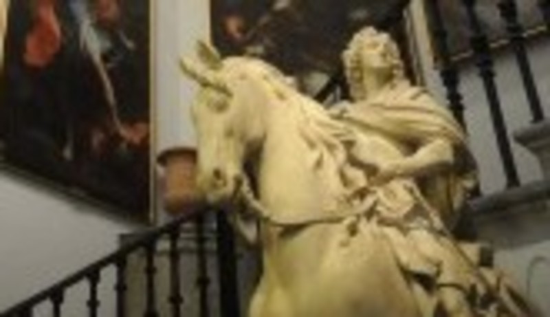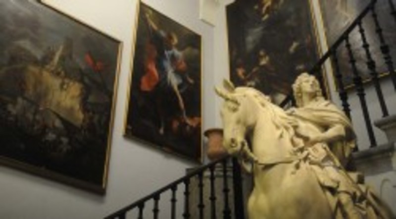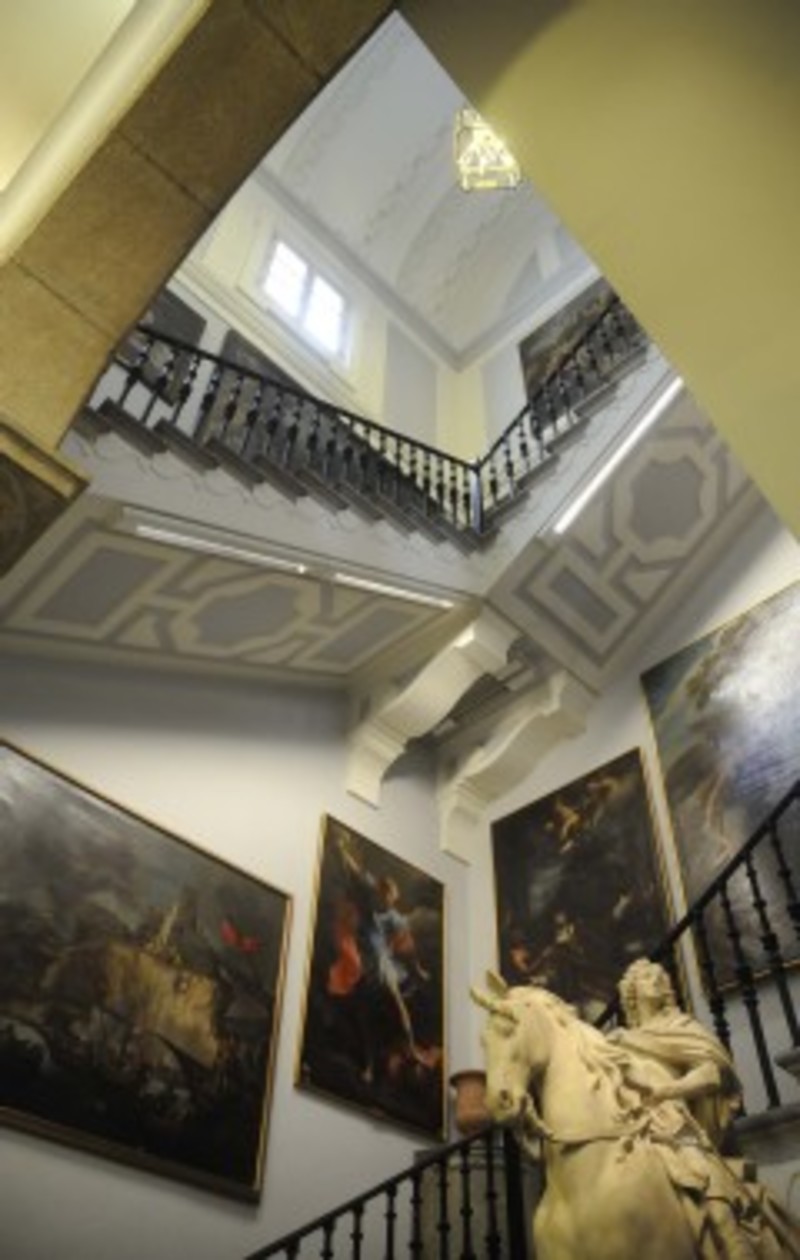 Las sorpresas se suceden. Los tapices, cuadros y esculturas que descansan en las escalinatas que dan acceso a las plantas superiores dan muestra del volumen de obras que posee la academia: