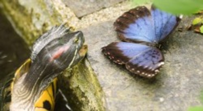ciclo completo de vida, uno de los objetivos de las visitas guiadas. Los visitantes pueden contemplar hasta un centenar de mariposas de veinte especies diferentes, integradas en un ambiente tropical en el que el color de sus alas es lo que más llama la atención, sin caer en que éste detalle refleja y advierte del poder tóxico del que disponen.
