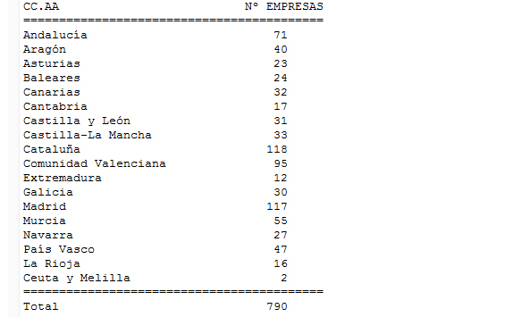 El siguiente cuadro recoge, por comunidades autónomas, el número de empresas de trabajo temporal existente en cada una: