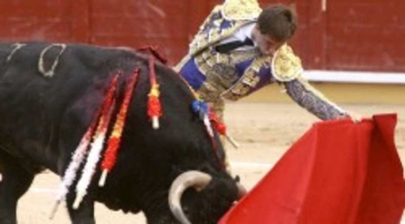 El segundo, recortadito, muy cómodo —demasiado cómodo— de pitones le pareció a El Cid el animal adecuado para “expresarse”. Así que hubo verónicas y chicuelinas sueltas y poco emotivas. Así lo vio el público que tampoco se “expresó” con entusiasmo. La misma medicina que en la capa, llevaba El Cid en la muleta, y aunque el toro saltaba al suelo en algún remate, cogió el ritmo templado (y desfajado) de la franela. Según el toro se embebía, la faena se fue vulgarizando, desengrasando, y el efectismo sustituyó a la sinceridad. Pases despegados, toreo hacia fuera, electricidad, circulares de compañía… pinchazo y estocada. Cuando el pobre animal se iba a tablas, le puso la muleta encima, pidiendo palmas, como si de una gran faena se tratara. Una oreja.