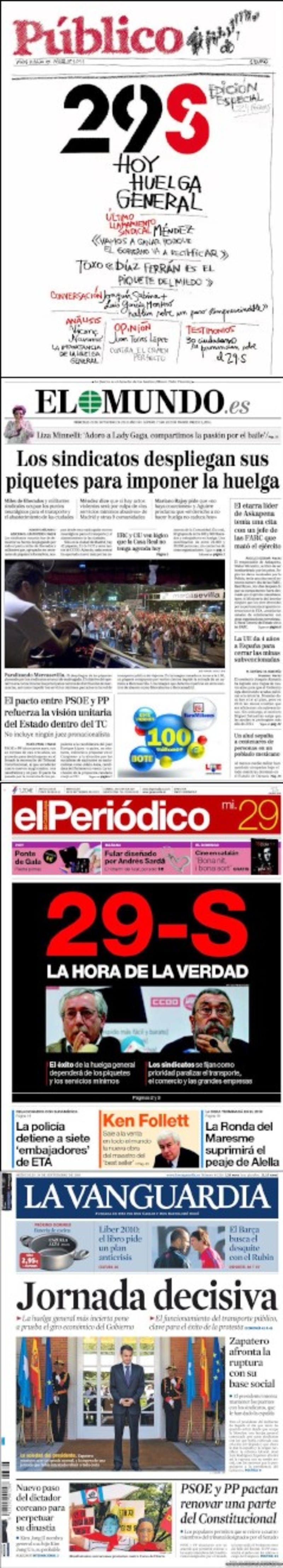 Sí hay que resaltar el lamentable hecho que supone que los piquetes cerraran este martes la rotativa de La Gaceta a las 22:30 horas, por lo que no ha podido "salir" el número correspondiente a esta jornada de huelga. El titular abajo destacado corresponde al que ofrece su web de la versión impresa que no pudo ver la calle, aunque Intereconomía ofrece la edición íntegra en la web.