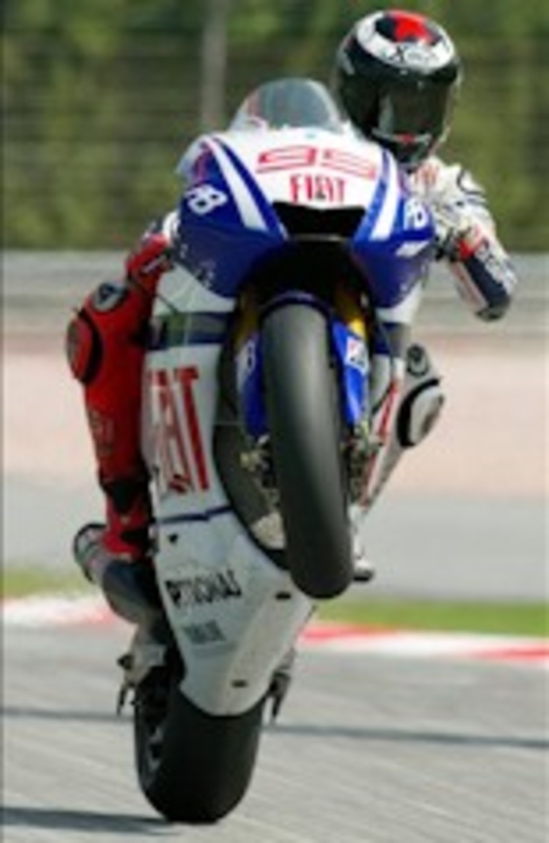 No hubo que esperar mucho para encontrar la réplica de Jorge Lorenzo, convencido de sus posibilidades en Sepang, que le endosó más de dos décimas de segundo, 2:01.774, a su más inmediato perseguidor, el campeón del mundo de Superbike en 2009, Ben Spies, y aún no había concluido su exhibición pues con un ritmo espectacular arañó 72 milésimas de segundo más a su tiempo a poco menos de diez vueltas para el final de los entrenamientos.