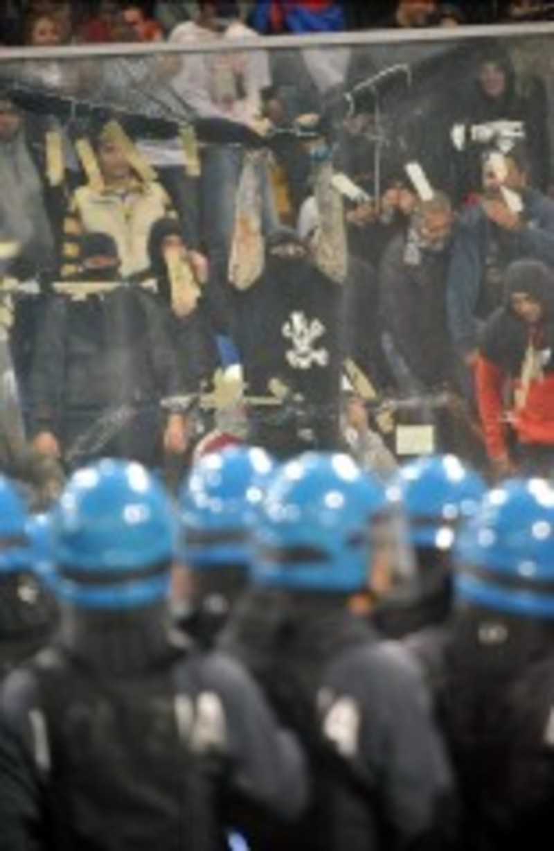 Los incidentes se saldaron con la detención de 17 seguidores serbios, entre ellos el cabecilla de los ultras, Ivan Bogdanov, que fue detenido después de romper con unos alicates una valla de contención del estadio, arrojar bengalas e incitar al resto de hinchas.