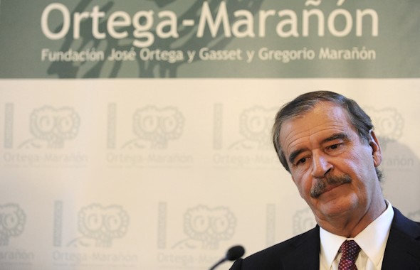 De gran porte, Vicente Fox aparece en la sala de prensa de la Fundación Ortega y Gasset con inusitada humildad y saludando personalmente a los periodistas allí convocados. Sorprenden sus grandes manos y su inalterable voz a la hora de tratar temas tan espinosos como el narcotráfico, las relaciones bilaterales con Estados Unidos o la galopante corrupción que azota la política azteca. En una extensa entrevista concedida a EL IMPARCIAL, Fox no duda en abordar la actualidad mexicana e, inesperadamente, lanzar una crítica velada a su sucesor en el cargo, Felipe Calderón.