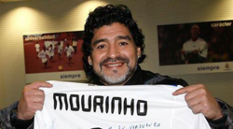Mourinho firma una camiseta a su ídolo "Don Diego"