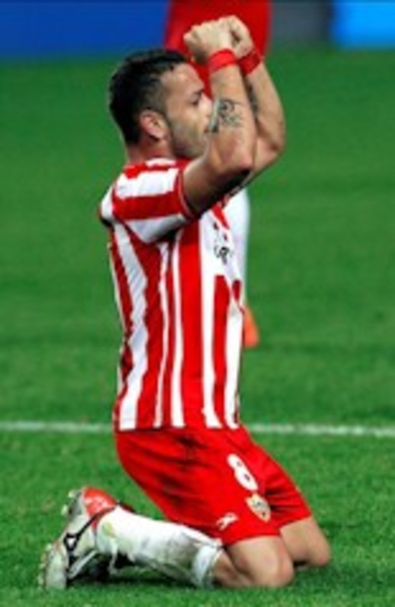 El empuje local en el tramo final del choque creó ciertas expectativas en la grada, pero el tanto fue otra vez del Almería, gracias a un potente y gran remate del argentino Pablo Piatti.