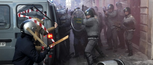 Berlusconi victorioso de una moción de censura, manifestantes se han echado a la calle para protestar por esta circunstancia protagonizando duros enfrentamientos con la