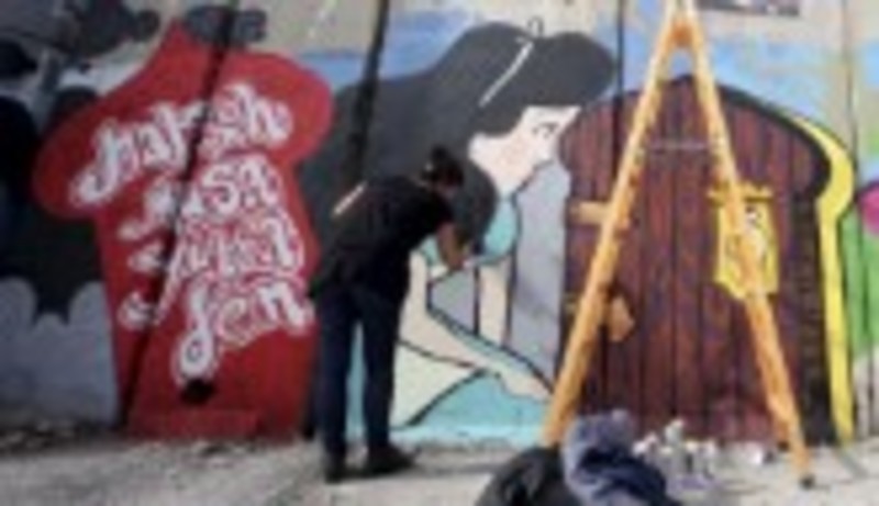 Cinco grafiteras españolas pretendían llenar de color y vida cincuenta metros del muro de hormigón de unos siete metros de altura que rodea Belén por la zona este de la ciudad y que desprende frustración y amargura, todo ello teñido de gris.