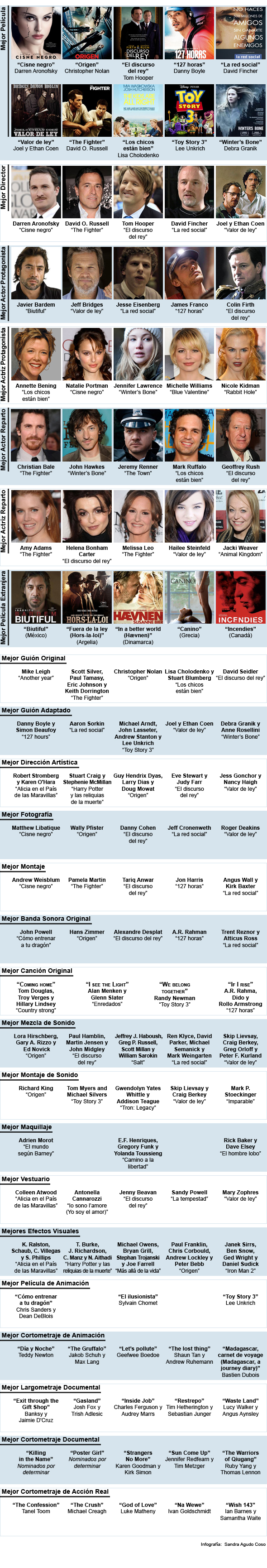 La Academia de Hollywood dio a conocer este martes en Los Ángeles las candidaturas para la ceremonia de la 83 edición de los Óscar, que se celebrará el próximo 27 de febrero.