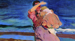 La exposición concebida por Hauptman introduce al visitante en el universo "soleado" de Sorolla, quien exhibe en sus numerosos lienzos su interés por las sensaciones luminosas, lo que le lleva a escoger paisajes que revelan las variaciones atmosféricas, sin ser realmente impresionistas. Está también Zuloaga, quien para el comisario es el "pintor de la tierra" y ejecuta una experiencia opuesta a la de Sorolla al desplegar una paleta oscura de trazos melancólicos con los que revela la parte sombría de una España tradicionalista.