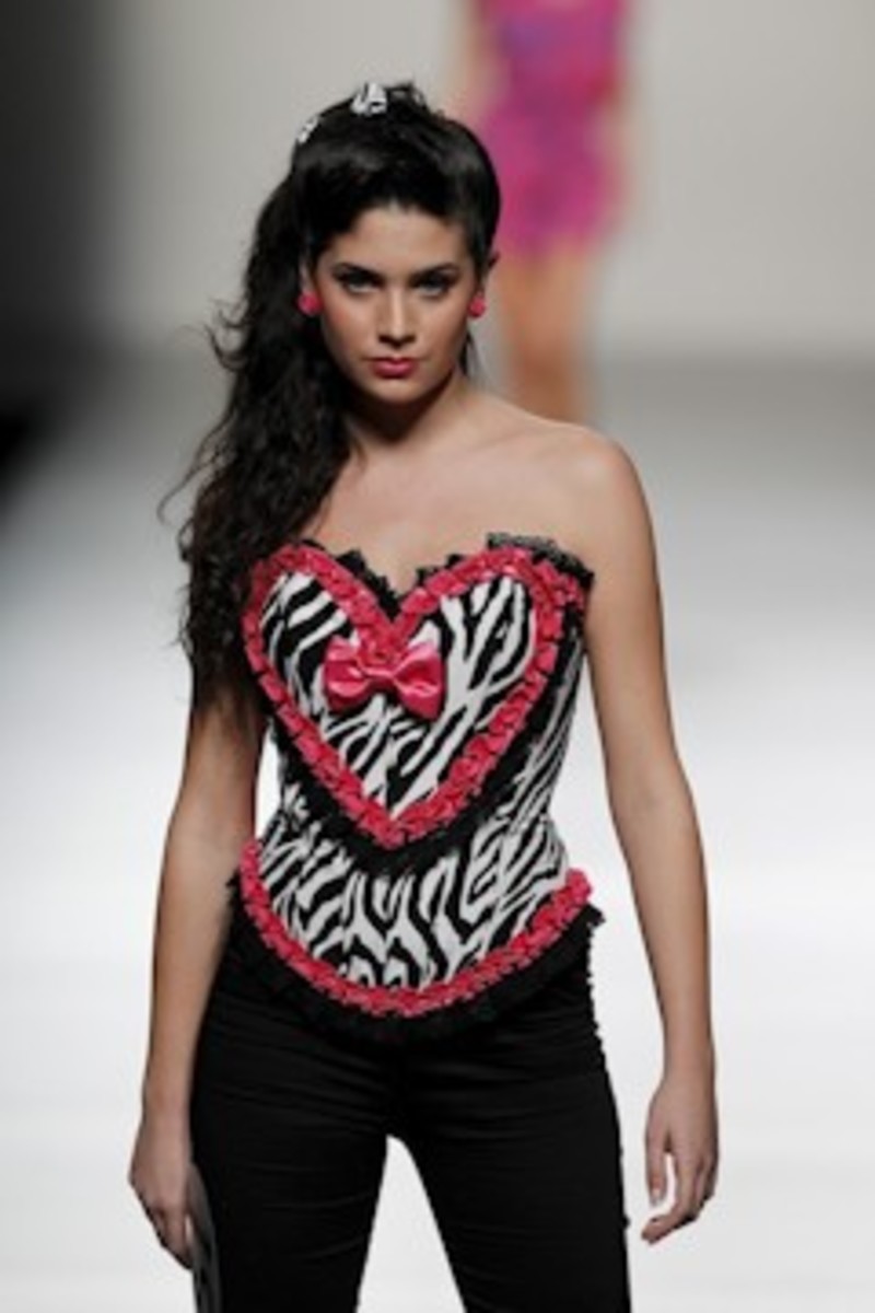 Los tejidos que ha elegido son los terciopelos, los algodones, las gasas, los encajes italianos y las lanas. Dos son sus prendas más arriesgadas: un par de corsés con gorgueras: uno de ellos las lleva en los hombros, y el otro, en las caderas.