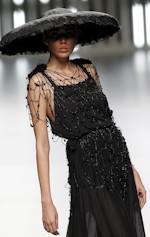 Como si de un rompecabezas se tratara, a lo largo del desfile se vieron prendas que se transformaban en otras muy diferentes en tejidos más propios de un estudio de decoración que de un taller de costura como el caucho, el metacrilato o cristales bordados.