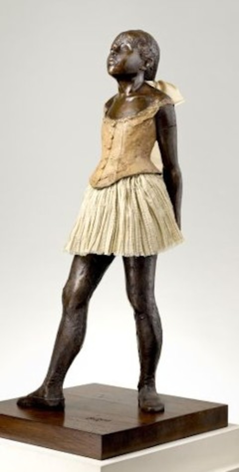 A la entrada de la sala de la exposición destaca la estatuilla emblemática "Petite danseuse de quatorze ans" ("La pequeña bailarina de 14 años"), en la que Degas introdujo elementos cotidianos, como una falda y una malla, hasta entonces impensable en la escultura.