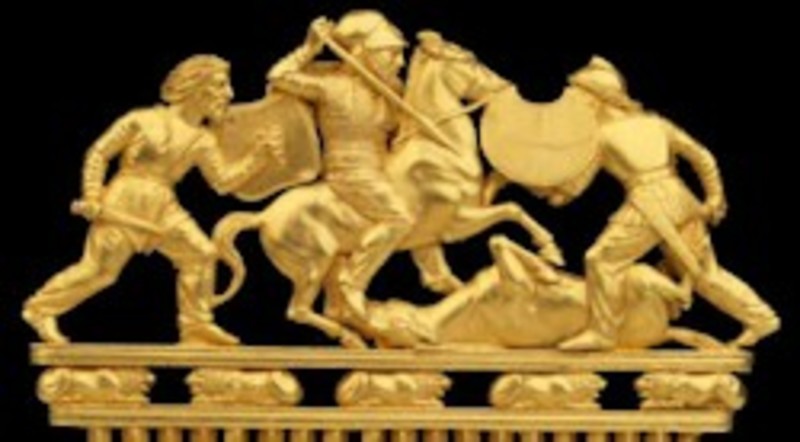prehistoria, se verán venus paleolíticas talladas en marfil, el elenco de bronces de Urartu y joyas del enterramiento del IV milenio antes de Cristo del Kurgan de Maikop, entre otros objetos. Los escitas, Grecia y Roma protagonizan la segunda sala, que además de los dos principales tesoros de la muestra albergará joyas de oro de los pueblos nómadas del Altai y los escitas.