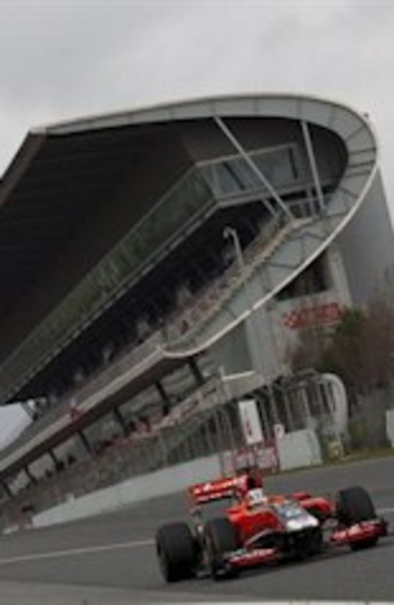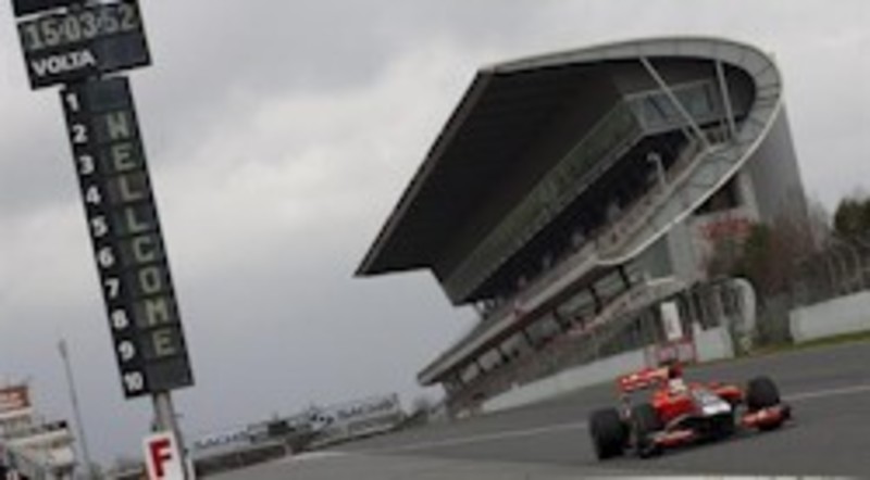 En el primero de los cinco días de entrenamientos oficiales --últimos de la pretemporada--, solo ocho escuderías salieron a rodar y fueron once los pilotos que probaron el asfalto del trazado catalán. Así, Ferrari, Mercedes GP, Williams e Hispania esperarán a mañana para hacer sus primeras pruebas.