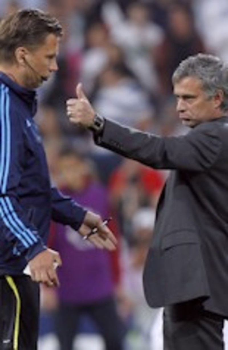 Mourinho, indignado con el "escándalo arbitral"En la rueda de prensa posterior al encuentro, José Mourinho dejó patente su indignación con la actuación del alemán Wolgang Stark. El Portugués siguió mandando mensajes a Guardiola: "Ha ganado una Champions que a mi me daría vergüenza ganarla con el escándalo de Stamford Bridge. Y este año, si la gana, será con el escándalo del Bernabéu"