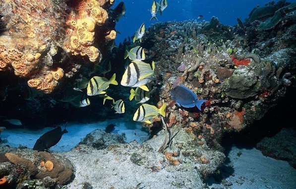 Los arrecifes Los arrecifes coralinos de Cozumel forman parte del segundo sistema más grande del mundo y entre sus principales componentes biológicos se incluyen alrededor de 45 especies, así como una gran variedad de flora y fauna asociadas, entre ellas algas, anélidos, anémonas, esponjas, moluscos, crustáceos, peces y corales blandos.