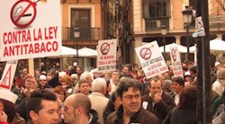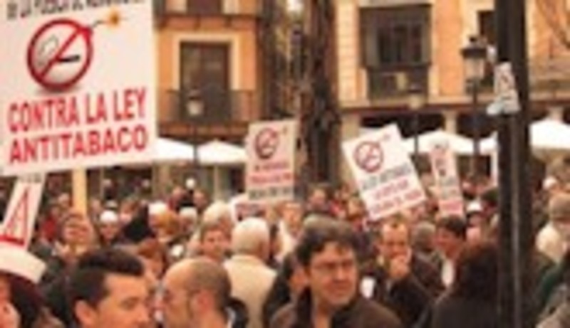 Más de un millar de hosteleros de toda España se han manifestado en la tarde del lunes en Madrid para manifestar su oposición a la Ley Antitabaco, que según la Federación Española de Hostelería y Restauración (FEHR), es la causa de más de 53.000 despidos y "está arruinando al sector.