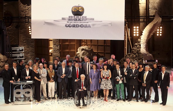 Foto de los premiados en la gala de entrega de la XIV edición de los Premios Max de las Artes Escénicas, que anualmente concede la Sociedad General de Autores y Editores (SGAE) y la Fundación Autor, celebrada esta noche en el Teatro Góngora de Córdoba. EFE/Rafa Alcaide.