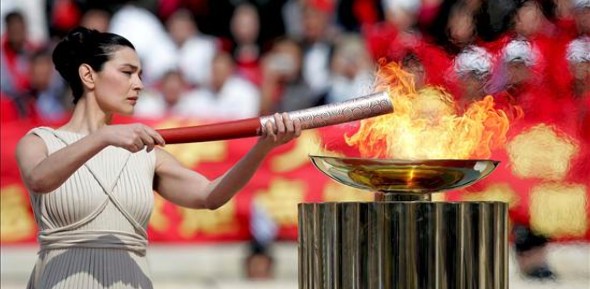 Grecia entrega la Antorcha a China entre protestas de activistas
