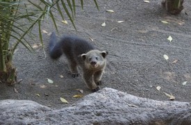 Se trata de una especie muy poco conocida a la que también se le llama 'gato-oso' ya que parece un híbrido entre estos dos animales. Pertenece a la familia de las jinetas, pero son muy peculiares y distintos de todos los demás parientes de su familia.