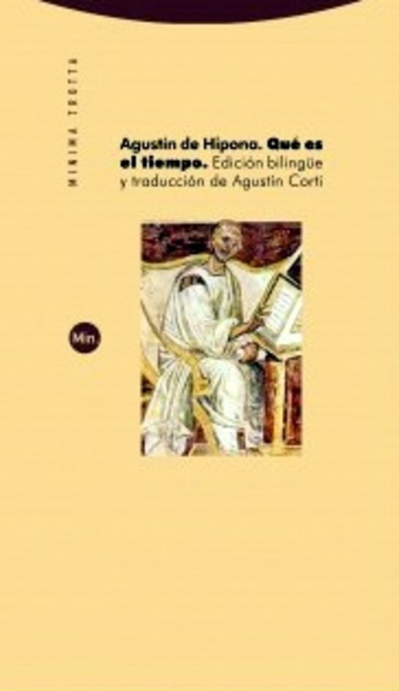 Qué es el tiempo ha sido ahora nuevamente traducido y editado por Trotta, con independencia del resto de libros que componen esa soberbia obra de la historia del pensamiento firmada por Agustín de Hipona. La traducción actualizada de Agustín Corti pretende acercar el texto al lector contemporáneo, hacerlo más accesible a su vocabulario sin perder por ello rigurosidad y manteniendo el carácter analítico del texto agustiniano, cuya redacción latina original se incorpora junto a la traducción castellana, dando como resultado una cuidada edición bilingüe.