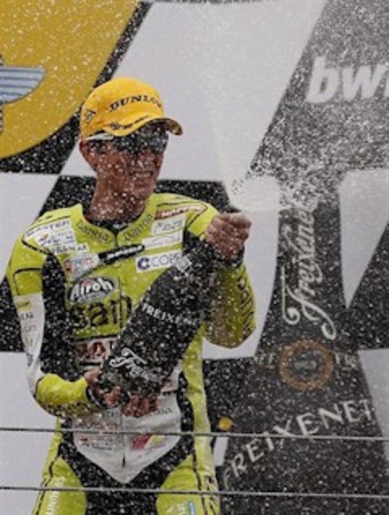 Mientras, en el grupo de cabeza, Terol y Zarco mantenían su particular lucha por la victoria y por el récord del circuito, batido primero por el francés y superado después por el piloto de Alcoy --1:57.816--. A falta de diez vueltas para el final, Terol, que rodaba mucho más rápido, cedió el relevo a Zarco, que abrió hueco.