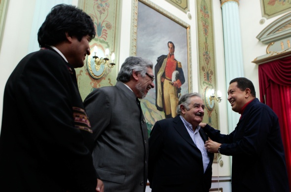 El presidente de Venezuela, Hugo Chávez recibió en el Palacio de Miraflores, la vista de sus homólogos de Bolivia, Evo Morales; Paraguay, Fernando Lugo y Uruguay, José Mujica, que llegaron al país suramericano para asistir a las celebración del bicentenario de su independencia. El gobernante calificó el encuentro como "una inyección muy grande y poderosa" que le ayudará a su recuperación. Entre tanto, los actos patrios no estuvieron exentos de incidentes al registrarse una agresión contra una diputada opositora que fue abordada por una ola chavista tras el desfile militar.