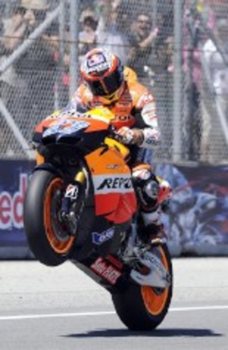 El piloto australiano de Honda, Casey Stoner, se ha impuesto en la carrera de MotoGP del Gran Premio de Estados Unidos, por delante de los españoles Jorge Lorenzo (Yamaha) y Dani Pedrosa (Honda), por lo que amplía su diferencia en el Mundial con respecto a Lorenzo hasta los 20 puntos.