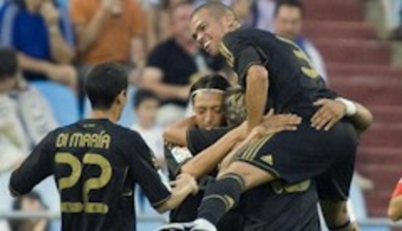 El equipo merengue puso el 0-3 en el marcador en el minuto 65, tras un potente disparo de Xabi Alonso desde fuera del área, y el 0-4 por medio, nuevamente, de Cristiano cinco minutos después y, a partir de ahí, el encuentro pareció dejar la calificación de oficial para entrar en la de entrenamiento aunque la voracidad de los suplentes madridistas permitió a Kaká hacer el quinto y a Cristiano engrosar su cuenta goleadora con el tercero, ante un equipo maño que dejó una pobre imagen.