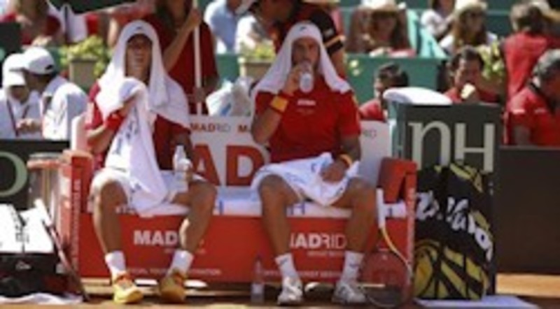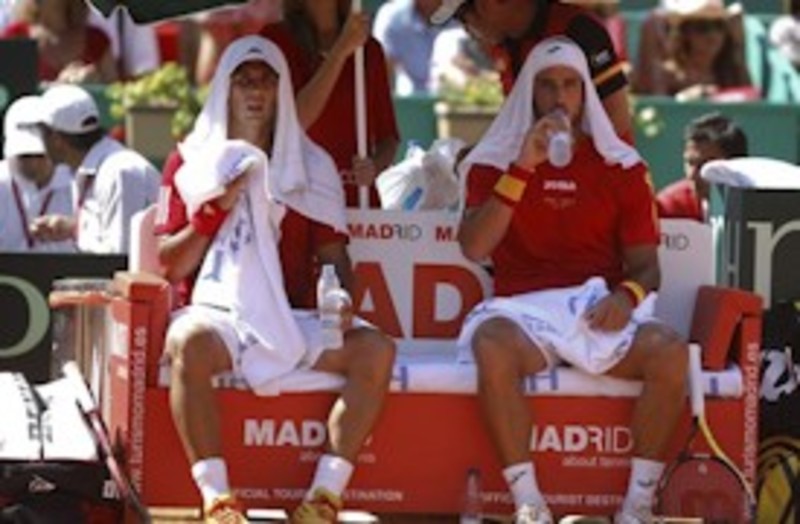 La jornada prosiguió ofreciendo un partido de tenis de máximo nivel. España gozaba de la posibilidad de pasar a la final de la Copa Davis, humillar a Francia y vengar la afrenta de la pasada edición. Pero el público que acudió a la plaza de toros de Córdoba comprendió rápidamente que esa posibilidad era una utopía. Verdasco y Feliciano no dieron la talla y cayeron en un partido de dobles sin historia. Llodrá y Tsonga dieron una lección de tenis y sonrojaron a la pareja española. Ya no se podrá ganar 3-0 a los franceses. Sin embargo, esta derrota no hace sino aplazar la clasificación española. Restan dos partidos individuales y para España jugarán Rafa Nadal -número dos del mundo- y David Ferrer -quinto de la ATP-. La derrota de este sábado se puede entender como un toque de atención a la pareja de dobles de la selección. La eliminatoria se cerrará con victoria española salvo cataclismo.