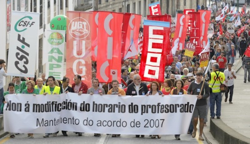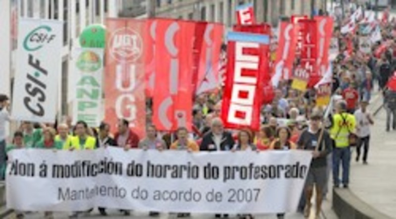 En torno al 75 por ciento de los profesores de la enseñanza no universitaria gallega han secundado la huelga en Galicia, convocada para protestar por medidas como el aumento del horario lectivo de los docentes, han informado fuentes sindicales.