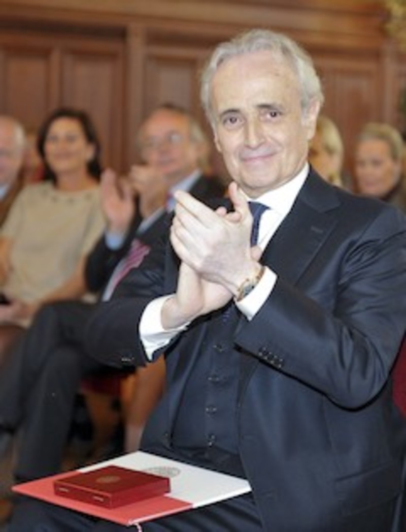 "Ya tiene casi todas las medallas del mundo, pero encuentro hermoso que una ciudad para la que la ópera significa tanto le entregue este reconocimiento", saludó el musicólogo galo a Carreras, del que recordó sus comienzos en la música y los momentos más esplendorosos, y también los más duros, de su carrera.