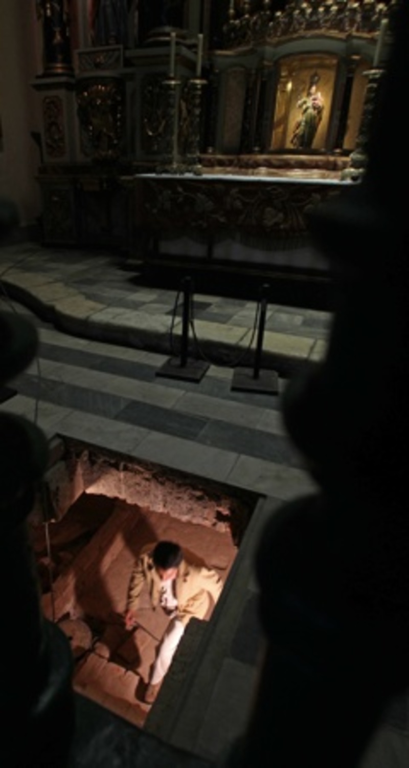 la Capilla de la Virgen de la Candelaria nos dimos cuenta de que había una falsa bóveda y debajo de esta había una zona de derrumbe. Al retirar la tierra del derrumbe nos dimos con la sorpresa de que había escalinatas", mencionó el arqueólogo.