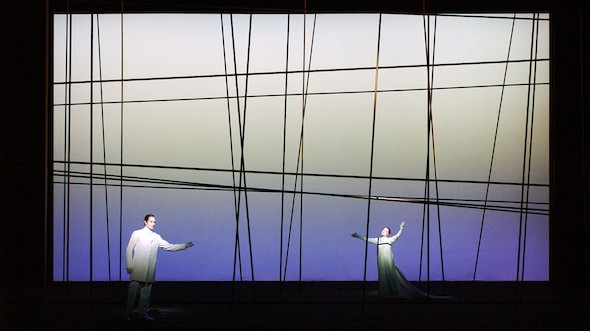 Por su parte, el director de escena, escenógrafo e iluminador Robert Wilson ha creado para este drama lírico en cinco actos una escena dominada por el juego de luces y sombras, al objeto de marcar las contradicciones y, en definitiva, los opuestos. El director norteamericano ha afirmado que para él lo más importante en el mundo de la ópera es la creación de un espacio en el escenario que ayude a escuchar mejor la música, mejor incluso que cuando se cierran los ojos para que la vista no distraiga al oído de la música porque, en su opinión, “se escucha con todo el cuerpo, no sólo con los oídos”.