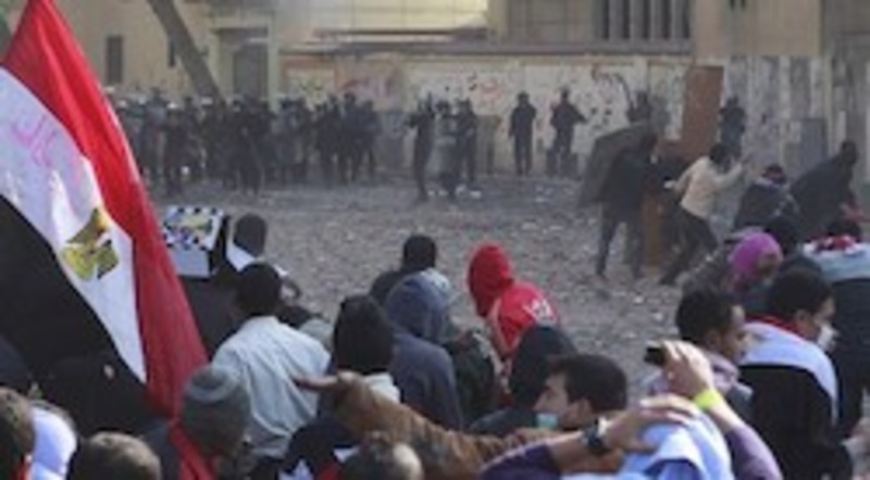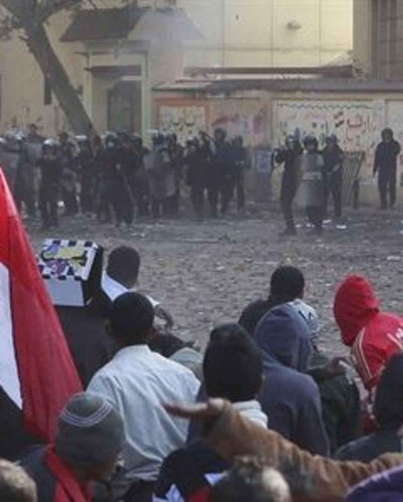 Policías y soldados cargaron contra los manifestantes, empleando gases lacrimógenos y porras, en la plaza el domingo, en el segundo día de disturbios a menos de una semana de las elecciones parlamentarias, las primeras desde la caída del presidente Hosni Mubarak.