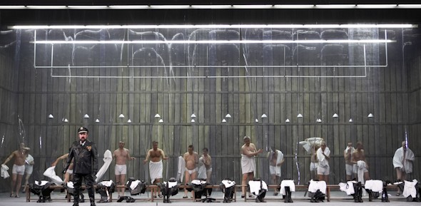 Martin Kusej y presenta un sobrio decorado diseñado por Martin Zehetgruber, con pocos elementos escénicos para construir el espacio idóneo en el que habrán de desarrollarse los cuatro actos y nueve capítulos separados por interludios orquestales que estructuran esta obra de gran intensidad y crudeza. La misma fue concebida inicialmente como la primera de una trilogía dedicada a la mujer rusa y su fragmentación se basa en la yuxtaposición de escenas articuladas como en el montaje de una película, no en vano el compositor era en aquella época autor de bandas sonoras y había trabajado durante años como pianista acompañante de películas mudas.