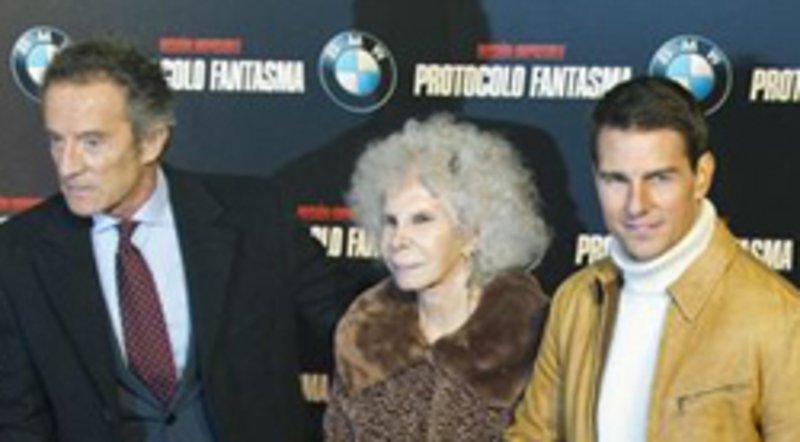 Tom Cruise ha visitado España para promocionar su última película, Misión imposible: Protocolo Fantasma. El actor norteamericano vino acompañado de los actores Paula Patton y Simon Pegg y tuvo una invitada de excepción: la Duquesa de Alba.