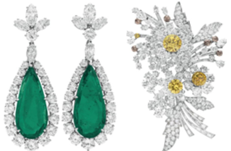 También despertó ovaciones un juego de seis piezas de esmeraldas y diamantes, vendido por un total de 24,7 millones de dólares, entre los que sorprendieron un singular broche por 6,5 millones de dólares y un collar a juego por 6,1 millones, además de un brazalete, un anillo, unos pendientes y otro broche.