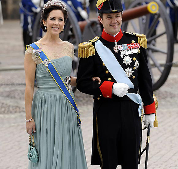 Mary de Dinamarca se decantó por un vestido azul grisáceo con cuerpo drapeado y escote de encaje para acudir a la boda de Victoria de Suecia. El vestido no me entusiasma pero creo que va muy correcta.