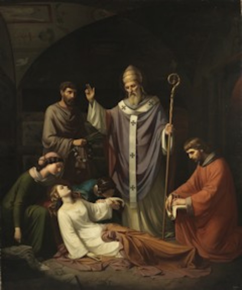 Entierro de Santa Cecilia en las catacumbas de Roma, de De Madrazo, es una de las pinturas que constata el interés de los artistas del siglo XIX por el pasado cristiano. En ella, el pintor relata el martirio de esta santa, quien fue sometida a tres cortes en su cuello sin encontrar la muerte. El cuerpo de la santa yace en el suelo de lo que parece un