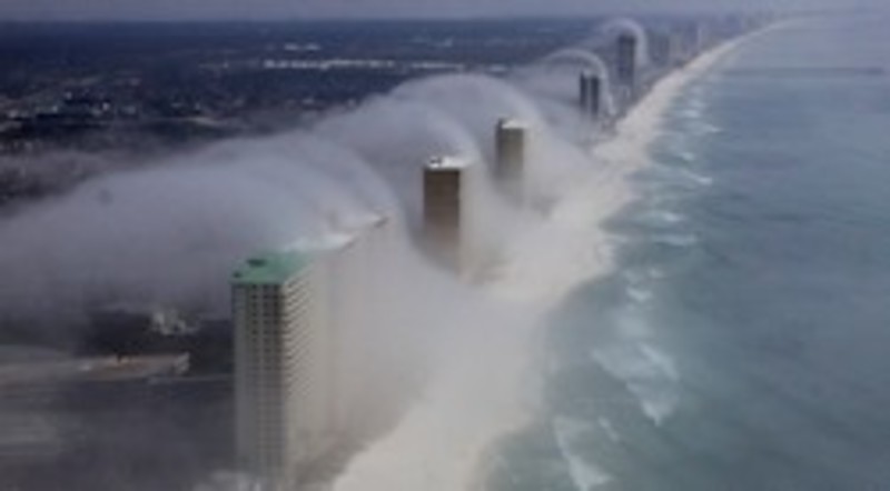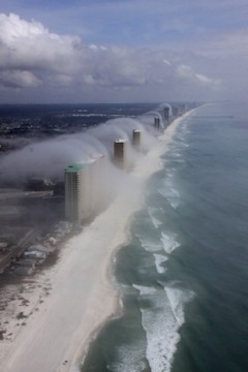 Unas fotografías realizadas desde un helicóptero en Florida (EE.UU.) muestran cómo un "tsunami" de nubes arrolla los rascacielos que flanquean la costa del Golfo de México y pasa sobre ellos para adentrarse en tierra firme con si fuera una ola de niebla gigante.
